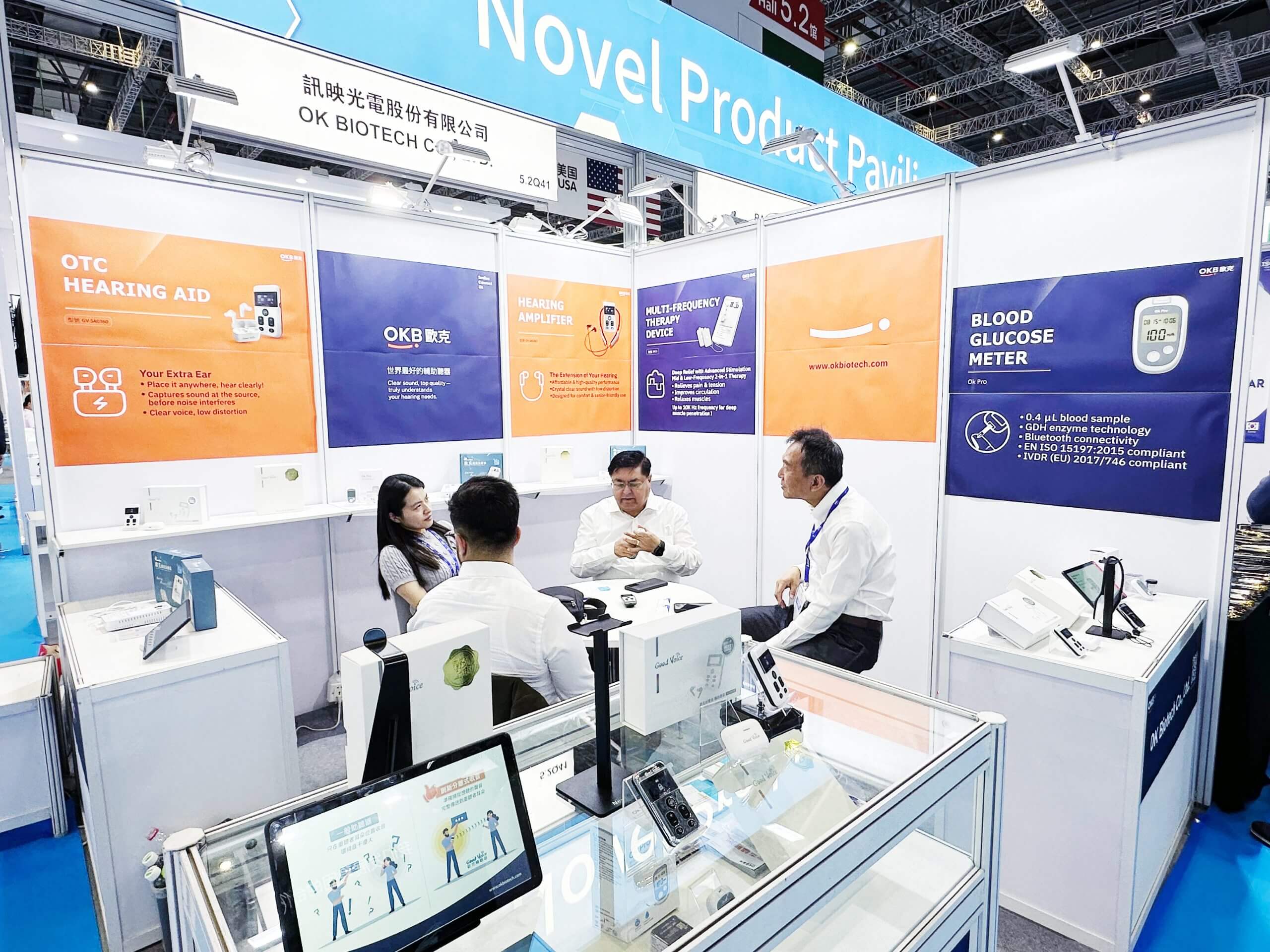 OKB歐克參加2025年4月於上海舉辦的CMEF醫療器材展,展出包括輔聽器與血糖儀在內的全系列產品。展會期間吸引眾多專業人士與國際買主關注,肯定歐克在聲音處理、配戴舒適度與血糖監測技術方面的優勢表現。